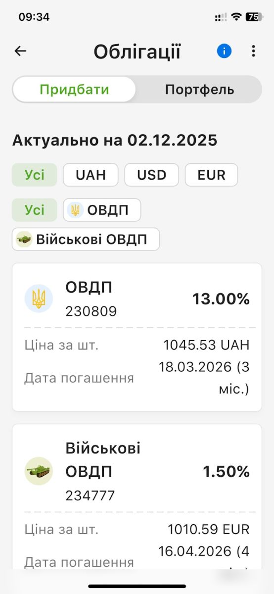 В ноябре Приватбанк открыл украинцам еще один простой путь к инвестициям — теперь путь к государственным облигациям внутреннего займа (ОВГЗ) начинается со смартфона. В мобильном приложении Приват24 появился новый инвестиционный раздел Облигации, где клиенты могут управлять своими ценными бумагами, инициировать покупку и продажу ОВГЗ.
