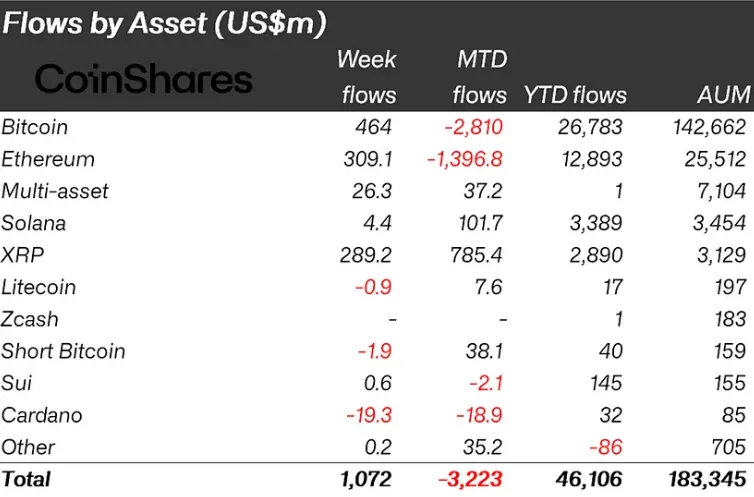 Криптофонды вернулись к росту: Привлечено более $1 миллиарда после месяца оттоков