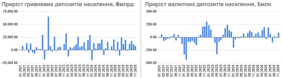 В ноябре 2025 года, по данным НБУ, население нарастило депозиты к новому историческому максимуму до 1 355,5 млн грн (+14,4% г/г, +1,1% м/м). Об этом пишет финансовый аналитик Андрей Шевчишин.