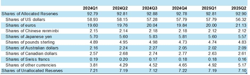 Валютная структура международных резервов центральных банков в динамике, % (данные МВФ)