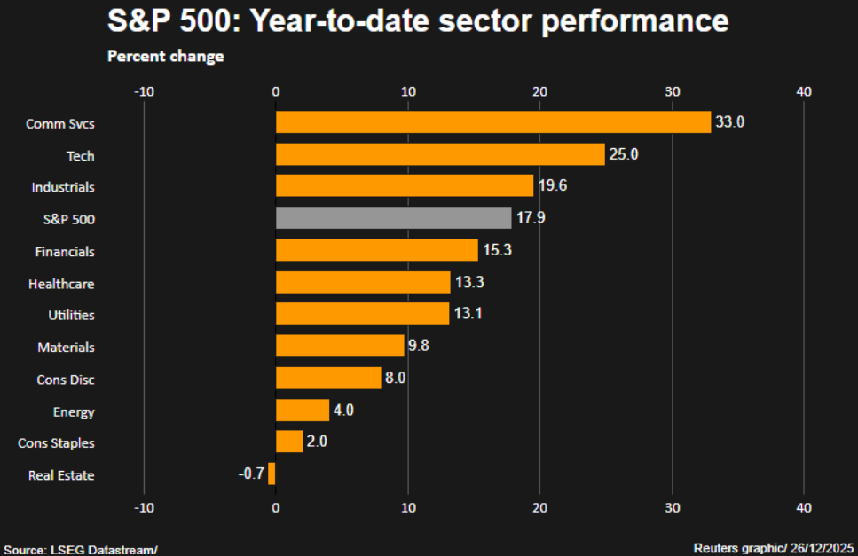 Аутсайдеры: недвижимость (единственный сектор S&P 500, завершающий год в минусе).