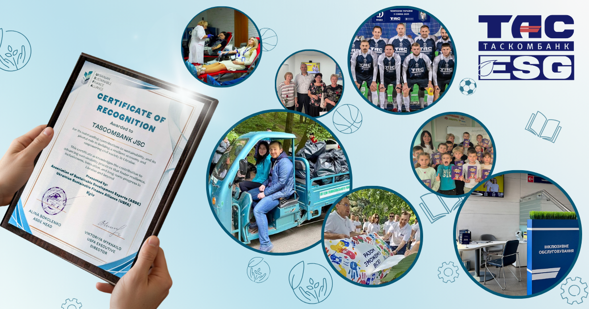 Certificate of Recognition от авторитетных организаций был вручен Таскомбанку за ответственный подход к устойчивому развитию. В течение этого года ESG-направление в Таскомбанке заметно усилилось. И особенно ценно, что к социальным инициативам присоединяются команды, часто вместе с семьями.