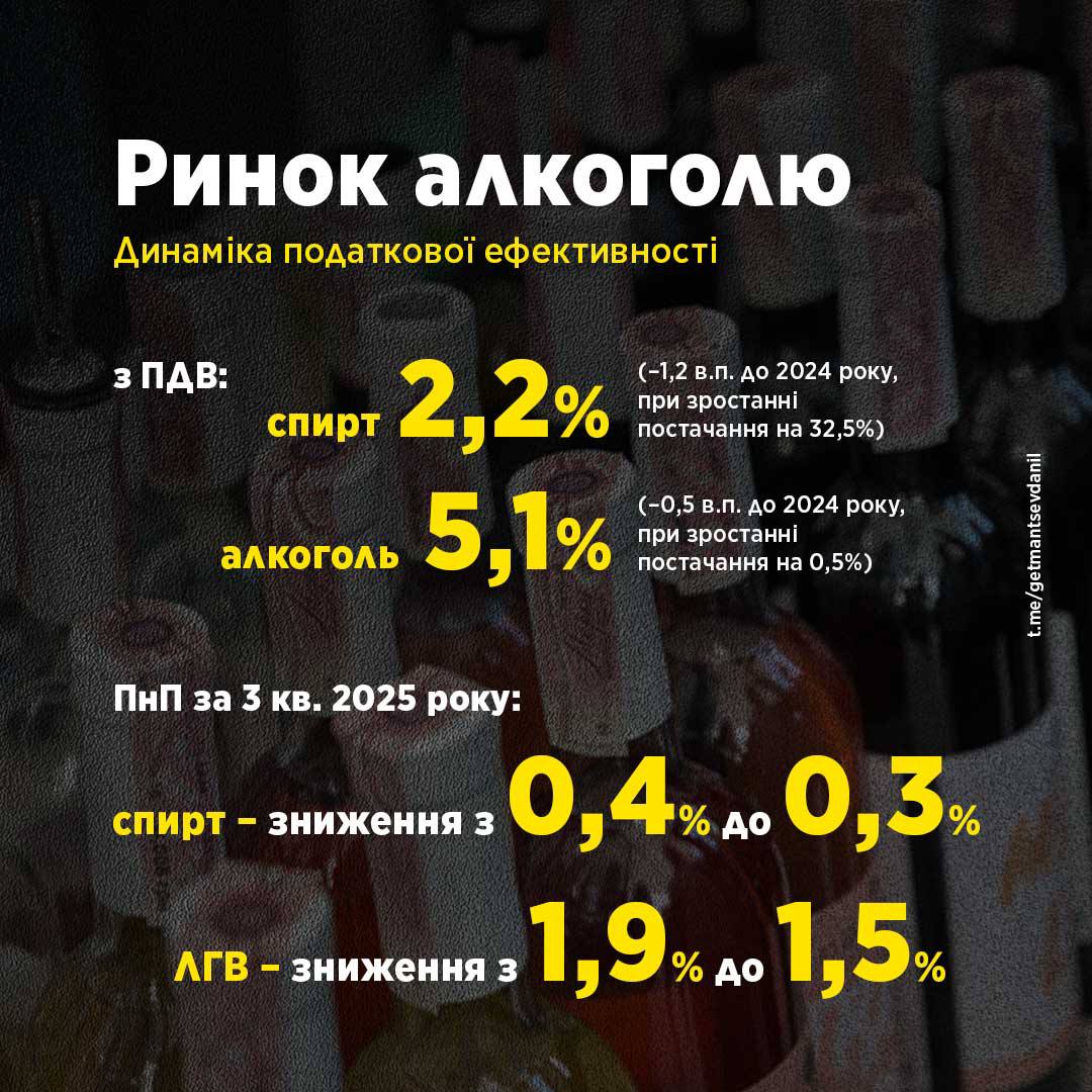«Что имеем в 2025 году? Важным индикатором детенизации традиционно является загруженность мощностей спиртзаводов, возросшая благодаря принятому ВРУ закону», — написал Гетманцев.