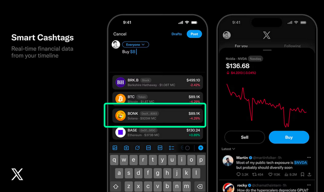 Социальная сеть X (бывший Twitter) анонсировала разработку новой функции «Smart Cashtags» («Умные хэштеги»), которая позволит привязывать биржевые тикеры к конкретным финансовым активам, включая криптовалюты и смарт-контракты. Об этом сообщил руководитель продукта компании Никита Бир, пишет CoinDesk.