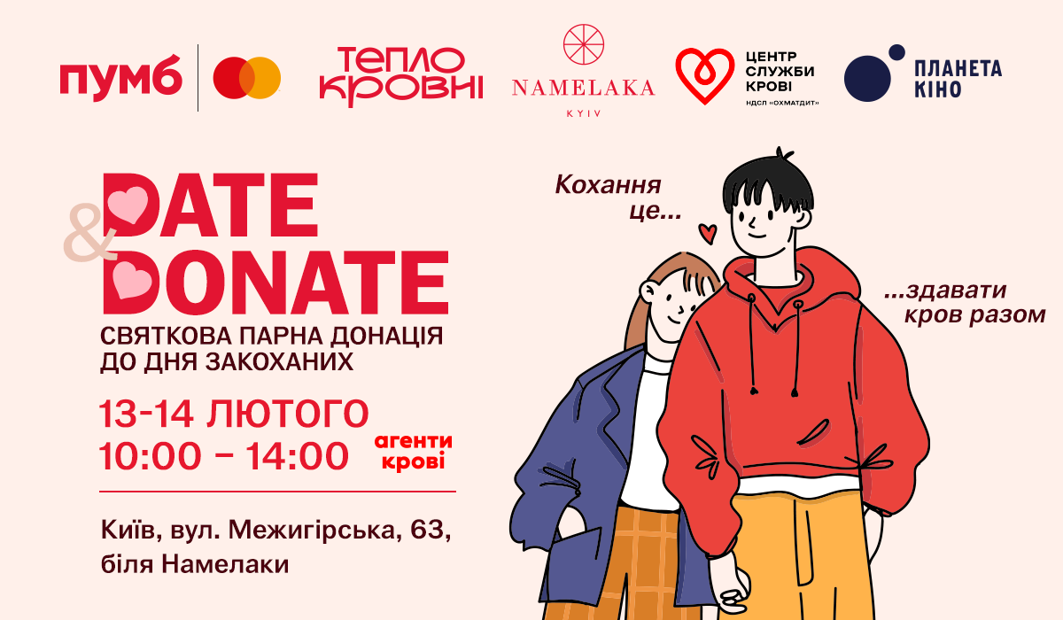 Когда любовь спасает жизнь: в Киеве ко Дню Святого Валентина влюбленным предлагают вместе сдать кровь в хабе «Теплокровные»