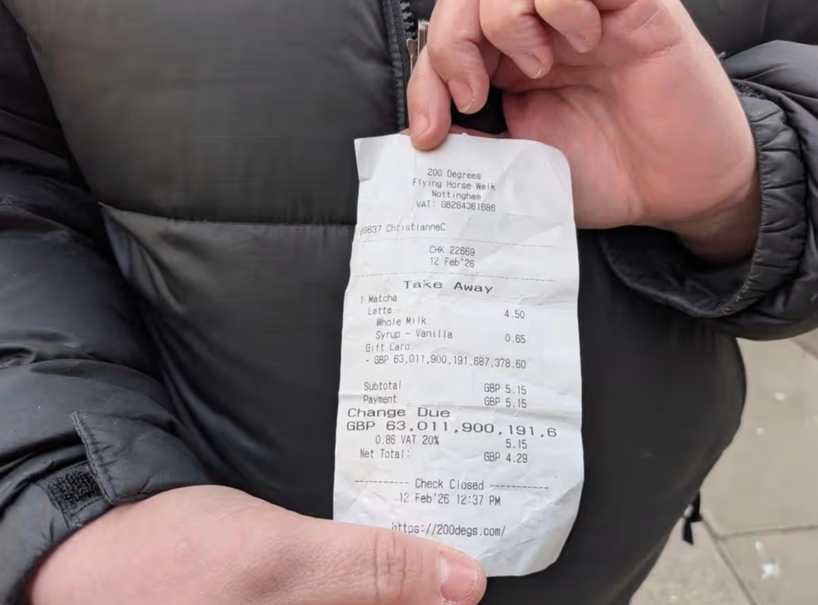 Девушка считала, что получила обычный ваучер на £10 ($13,50) в сеть кафе 200 Degrees Coffee. Однако на прошлой неделе, покупая матч-лате, она обнаружила, что баланс на карте составляет более 63 квадриллионов фунтов стерлингов (это число с 15 нулями).