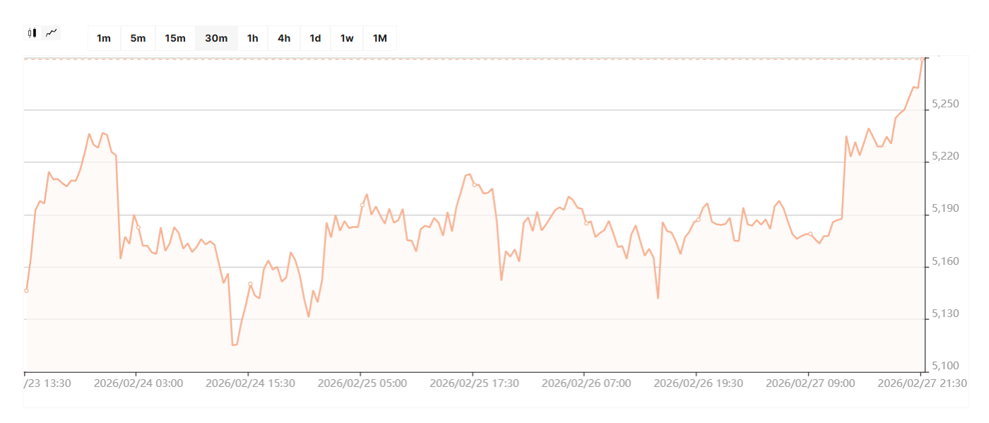 Если конфликт пойдет на спад и завершится мирным соглашением на условиях США и их союзников, коридор по золоту на этой неделе будет в пределах от $5 120 до $5 410 за унцию. При негативном сценарии развития событий золото на этой неделе, по моему прогнозу, будет находиться в коридоре от $5 250 до $5 600 за унцию с очень высокой волатильностью котировок на протяжении всех дней недели, включая и следующие выходные.
