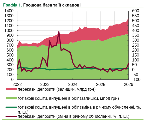 В течение отчетного периода общий объем операций достиг 88,03 млрд грн, что радикально повлияло на годовую динамику. Изменение денежной базы в годовом исчислении зафиксировано на уровне 25,3%. Этот показатель демонстрирует агрессивное ускорение по сравнению с предыдущими периодами: в декабре 2025 года он составлял 11,6%, а в январе 2025 года равнялся всего 3,0%.
