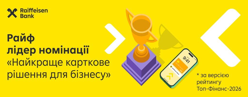 Райффайзен Банк стал победителем в номинации «Лучшее карточное решение для бизнеса» в ежегодном рейтинге Топ-Финанс-2026, который формируют журнал «ТОП-100. Рейтинги самых крупных» и деловой портал Delo.ua. Рейтинг определяет лидеров финансового рынка Украины среди банков, страховых компаний, МФО, платежных систем и криптообменных платформ.