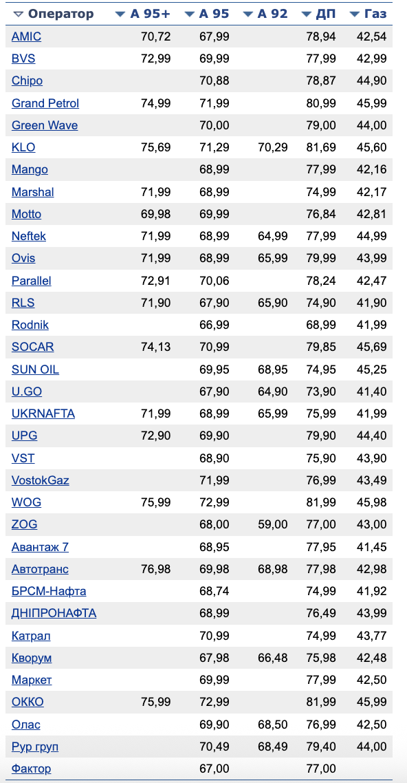 - А-95 — 70,22 грн/л (дорожал на 53 коп.)