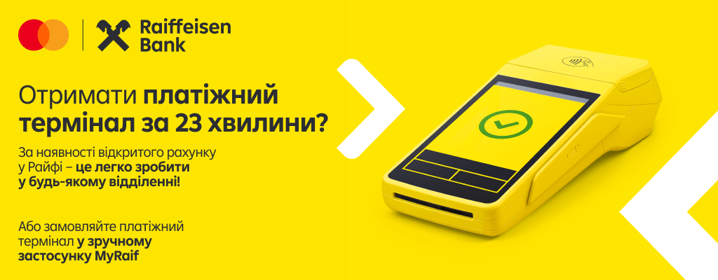 Райффайзен Банк представил новый эквайринговый сервис: отныне получить POS-терминал в банке можно всего за 23 минуты. Запуск сервиса стал возможным при поддержке Mastercard.