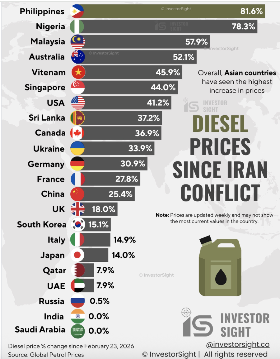 Украина вошла в топ-10 стран с наибольшим ростом цен на дизель на фоне конфликта вокруг Ирана — Investor Insight