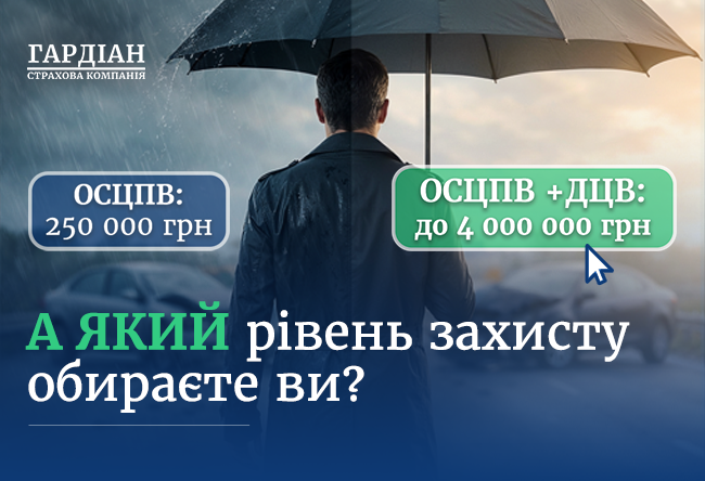 При оформлении автогражданки специалисты СК «Гардиан» всегда рекомендуют заключить договор добровольного страхования гражданской ответственности (ДЦВ). Так, помимо 250 тысяч гривен, которые покрывает обязательное страхование (ОСАГО), ДЦВ увеличит сумму возмещения при ДТП дополнительно на сумму от 100 тыс. грн до 4 млн грн.