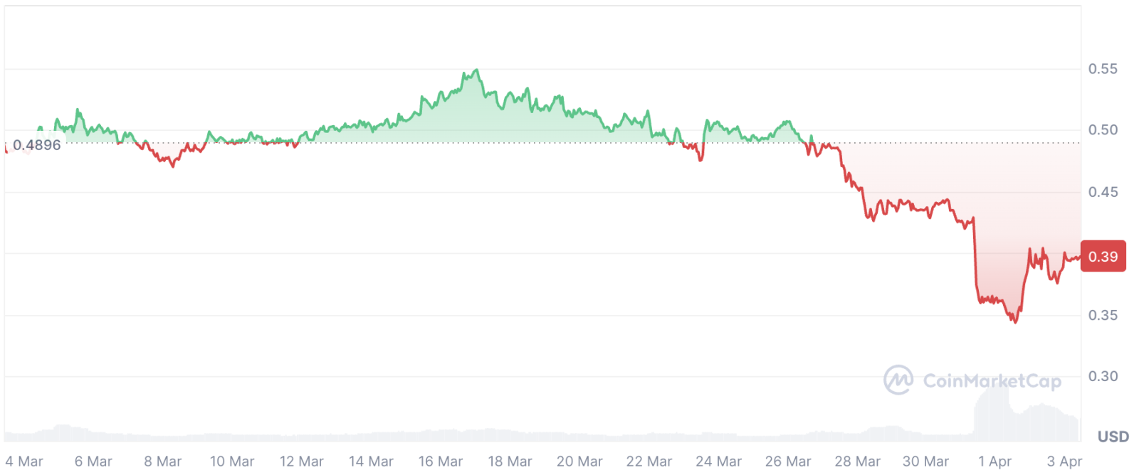 Токен одного из самых популярных криптогаманцев Trust Wallet (TWT) пережил стремительное пике в конце марта 2026 года. Только за пять дней стоимость актива рухнула на 30−35%, опустившись с отметки $0,52 до локального минимума в $0,32. Хотя впоследствии цена продемонстрировала признаки частичного обновления, рынок остается в напряжении. На помет написания новости торгуется на уровне $0,39.
