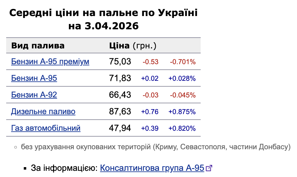 - Бензин А-95 показывает относительную стабильность. Символический прирост на 2 копейки зафиксировал цену на уровне 71,83 грн/л.