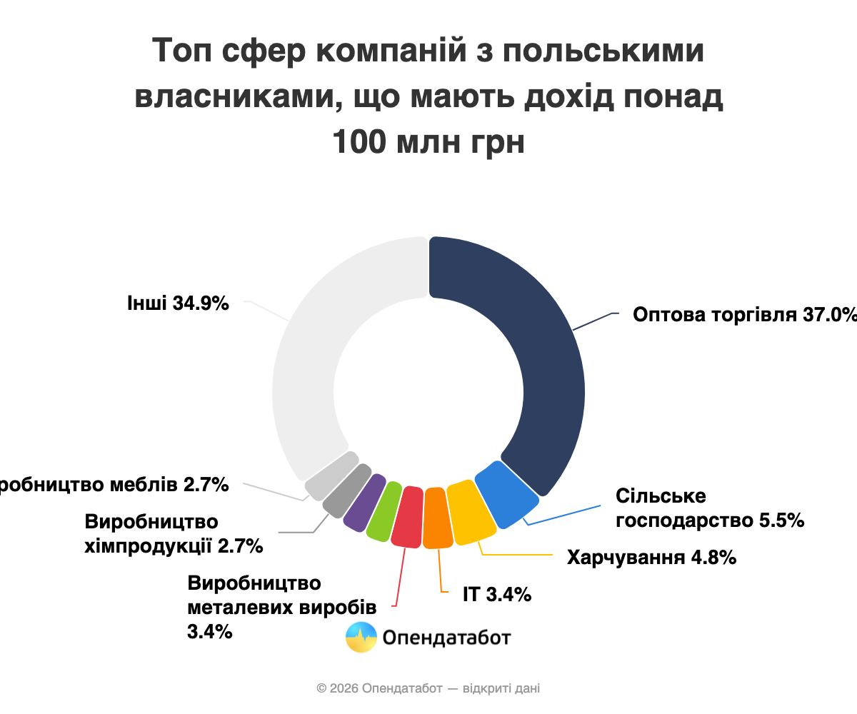 В топ лидеров также вошли производитель мебели Модерн-Экспо и дистрибьютор автозапчастей Inter Cars Ukraine — который, к слову, стал единственной компанией с польскими бенефициарами в Индексе Опендатабота 2026 года.