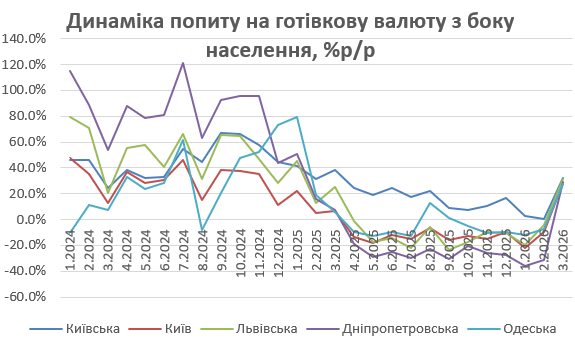 Анализ наличного валютного рынка за первый квартал 2026 демонстрирует традиционное лидерство столицы и неожиданные изменения в региональной динамике. Несмотря на то, что основной всплеск спроса пришелся на март, поведение покупателей в разных областях существенно отличалось. Об этом сообщил финансовый аналитик Андрей Шевчишин на своей странице в Facebook.