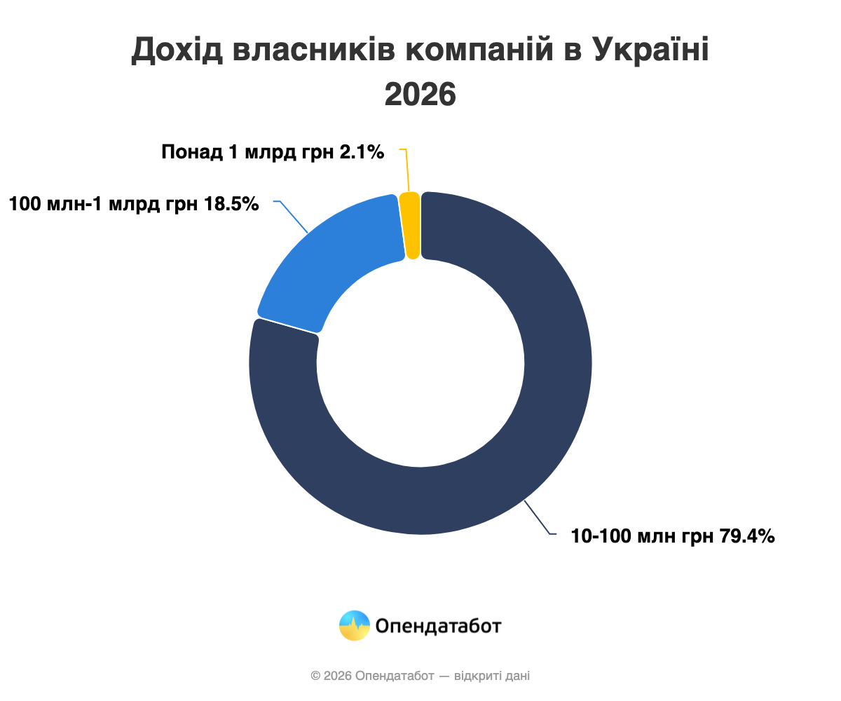 Большинство работает в «среднем» сегменте крупного бизнеса: 79% имеют доход от 10 до 100 млн грн. Еще 19% генерируют от 100 млн до 1 млрд грн, и лишь 2% — это настоящие гиганты с оборотом свыше 1 млрд грн.