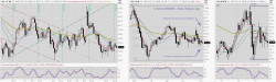 Кстати, этот уровень обозначен и сигнальным (signal WMA) мувингом на месячном графике. Что же, иногда на рынках случаются чудеса. Сейчас же дневные и недельные графики уже перекуплены (на недельном еще есть потенциал вверх) и я начинаю думать, где может закончиться эта коррекция. Например, при подходе к верхней границе нисходящего канала, на дневном графике может сформироваться сигнал на коррекцию от роста евро. И еще один нюанс. Попытка выйти к 1,1200 usd, заводит сейчас евро в зону борьбы (заштрихованная область)на дневном графике. Так что тестирование этого уровня вполне может затянуться до четверга, как раз к публикации решения ЕЦБ по ставкам. Там же и можем получить дополнительную информацию, куда дальше «пойдет евро». А как первый коррекционный уровень от роста, пока что буду рассматривать короткий мувинг (short EMA), который снизу «подпирает» еще одна зоны борьбы (заштрихованная зеленым область).