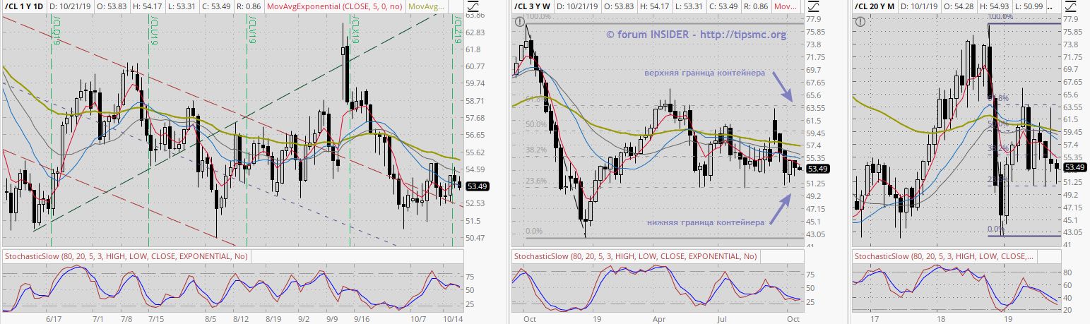 Ничего не изменилось глобально по нефти после моего прошлого обзора. После неудачного теста прайса 55 баксов за бочку свалились в штопор, что в принципе предполагалось. Гадать куда пойдем далее не хочу, цена на «черное золото» по прежнему в «контейнере» и более подробно написано мной в прошлом обзоре. Ну и предпочтения всё те же — медвежьи...