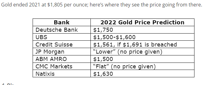 Прогнозы банков по золоту