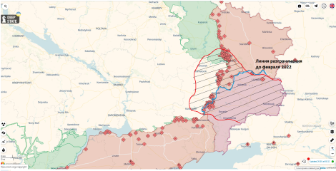 Этим объясняется ( в том числе ), что линия разграничения с 2015 даже сейчас стоит или движется очень медленно, при том, что в других местах фронта продвижения в обе стороны идут в разу быстрее .