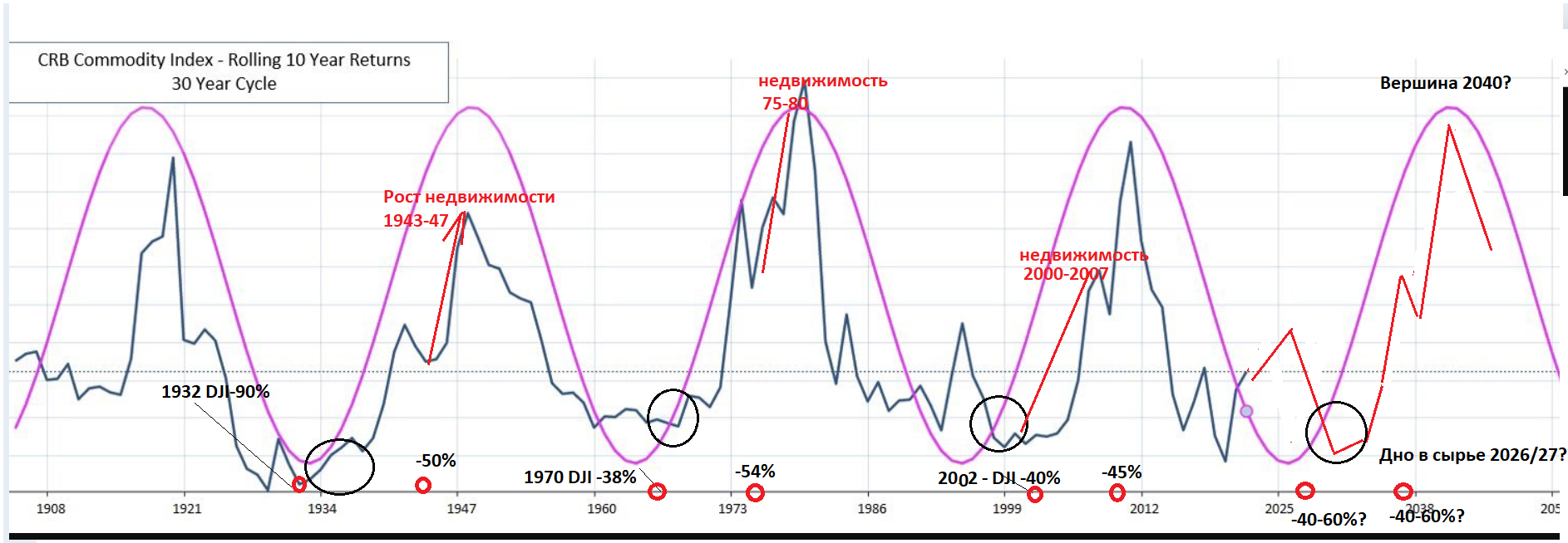 5. В середине цикла 2027?-2040 бывают мощные распродажи, как в акциях, так и в сырье.