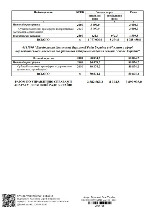Сравнение бюджетов Верховной Рады 2025 -2026 год