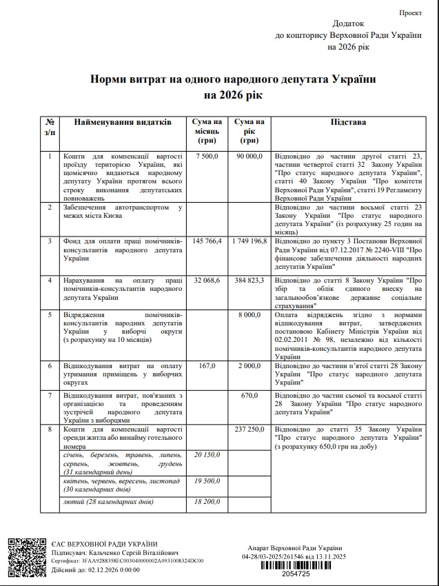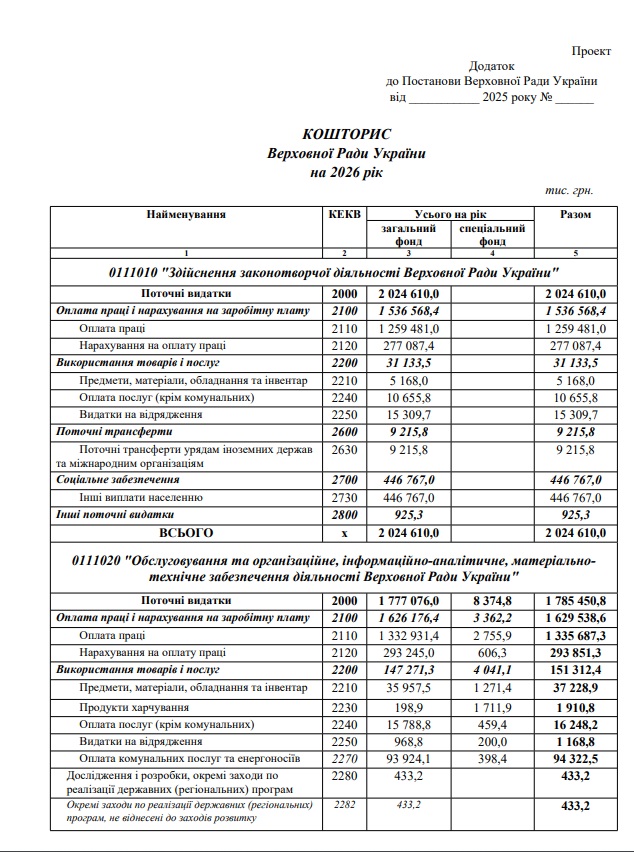 Сравнение бюджетов Верховной Рады 2025 -2026 год