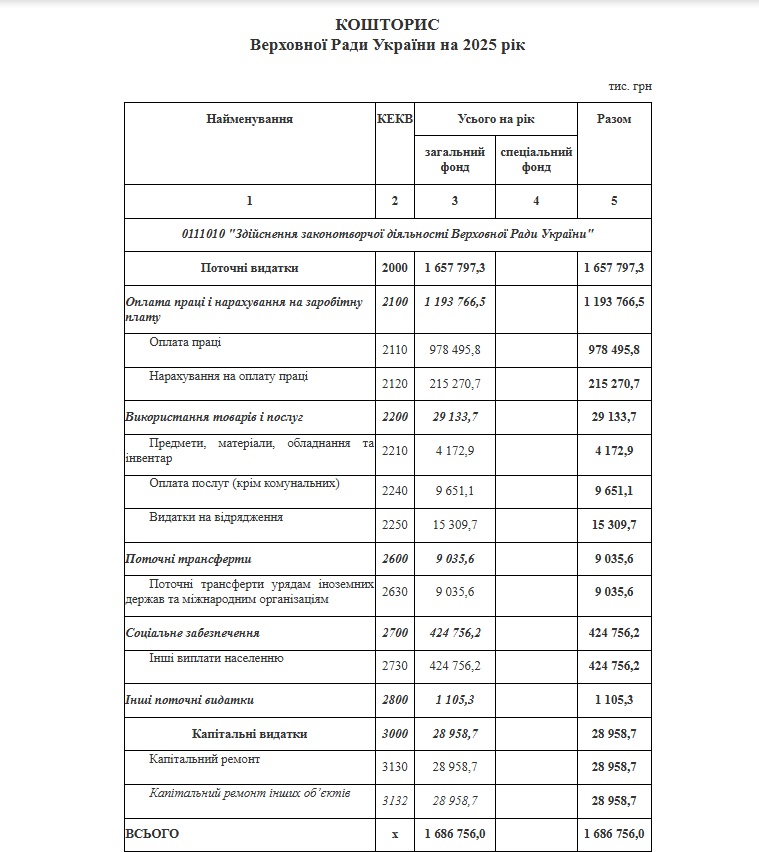 Ну и вот -кошторис на 2025 год. для сравнения.
