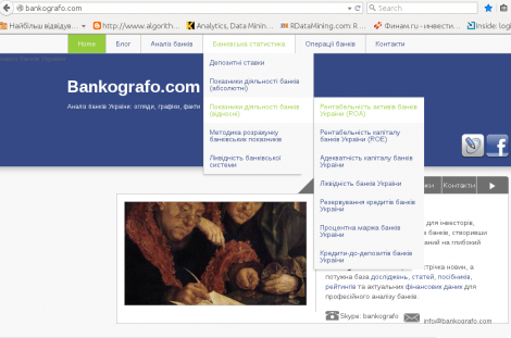 Второй источник — гораздо доступнее. А именно, сайт bankografo.com. Наводим курсор на раздел «Банківська статистика» -> «Показники діяльності банка (відносні)» — > ROA, Адекватність капіталу. Рисунок 1: