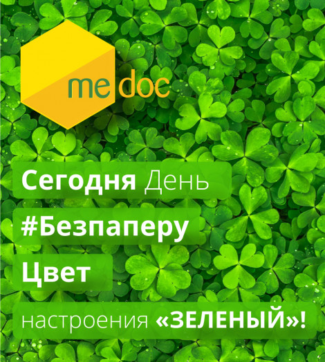Поэтому сегодня, во Всемирный День без бумаги (World Paper Free Day), наша команда популярного в стране продукта электронного документообмена M.E.Doc инициируем всеукраинский челлендж «Цвет настроения – ЗЕЛЁНЫЙ!». Своей акцией мы призываем каждого перейти с «тёмной» стороны на «зелёную», и если не отказаться полностью, то хотя бы сократить использование бумаги.