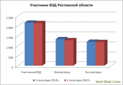 Любопытно, что общее снижение количества российских экспортёров в первой половине 2019 года, коснулось и Ростовской области (подробности здесь), и компаний, экспортирующих на Украину (всего экспортёров стало меньше на 3%, на украинском направлении ещё больше — 5%).