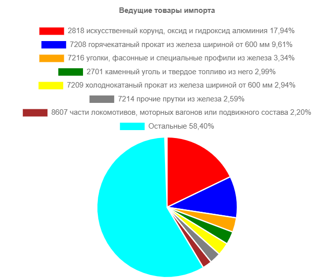 | 2818 искусственный корунд, оксид и гидроксид алюминия | 142,7 млн. $ | 1.58% | 416,25 тыс. тонн | 3.82% |