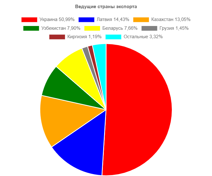 Латвия | 6,24 млн. $ | 75.28% | 16,11 тыс. тонн | 69.37% |