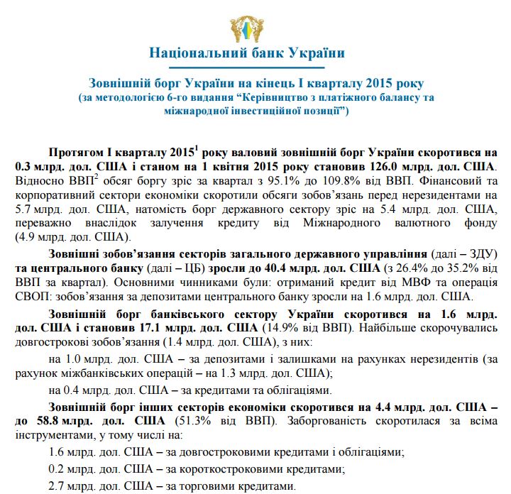 А вот данные НБУ на 1 апреля 2015 года.