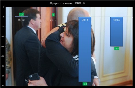 Напомню, что «Украинское правительство прогнозировало падение ВВП Украины по итогам 2014 года в целом на 7%, Национальный банк – на 7,5%. Согласно последним прогнозам крупнейших международных кредиторов Украины, падение ВВП страны в 2014 году составит 8,2% по оценкам Всемирного банка, 7,5% — по оценкам Европейского банка реконструкции и развития, 6,5% — по оценкам Международного валютного фонда.