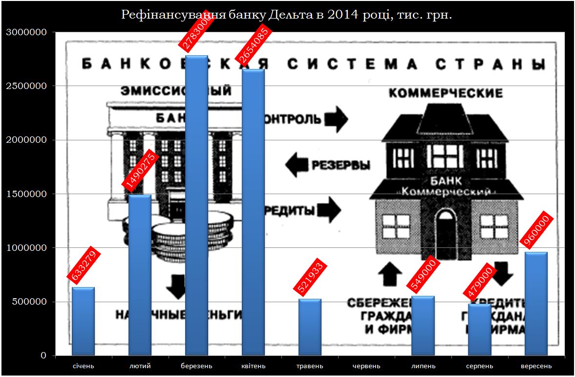 Как сказано в материалах дела, «Дельта-Банк» в течение 2014 получил от Нацбанка рефинансирования в объеме около 10 млрд. гривен.