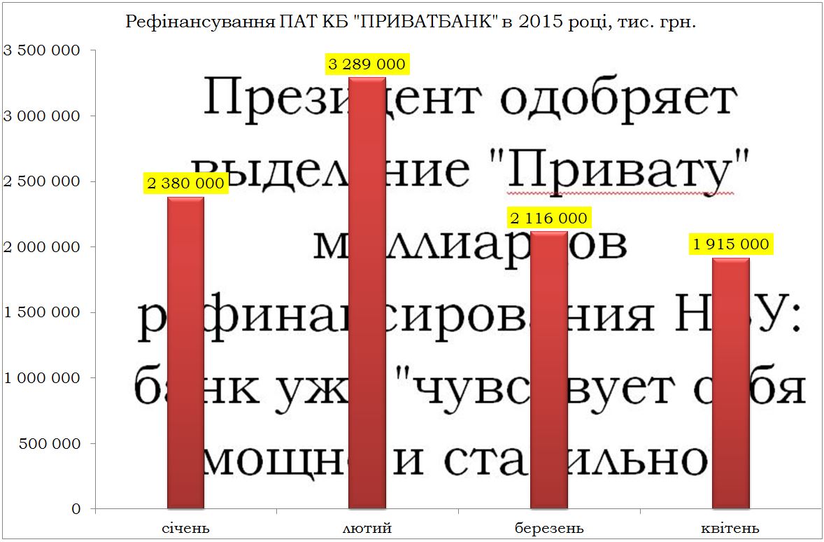 Итого, за период 01.02.2014-01.05.2015 Привату было выделено 30,5 млрд. грн. рефинансирования.