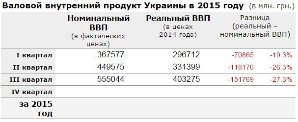 Просто посмотрите на динамику и показатели квартального падения разницы реального и номинального ВВП. Показательно, что ВВП в USD вообще исчез. Если посмотреть на старые данные, когда номинальный ВВП в USD еще был, то мы имеем такую картинку: