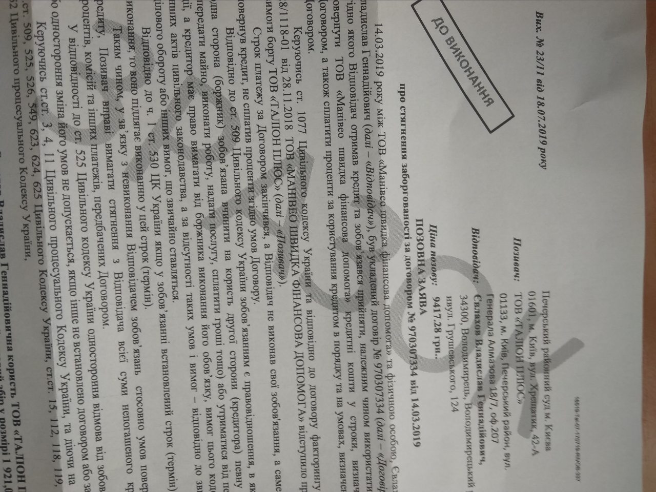 Пришло пісьмо від таліон плюс о подачі в суд на мене шо робити?
