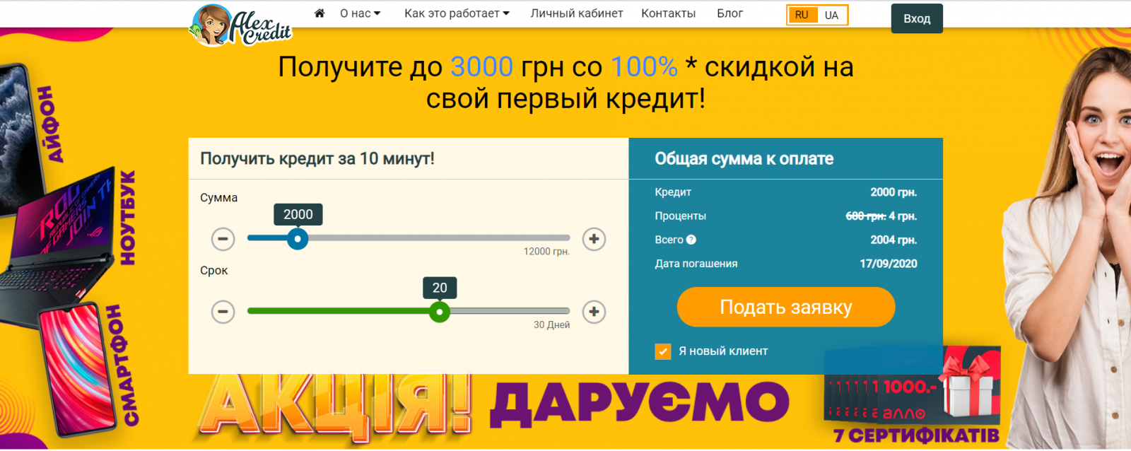 Компания выдает кредиты согласно действующего законодательства Украины.