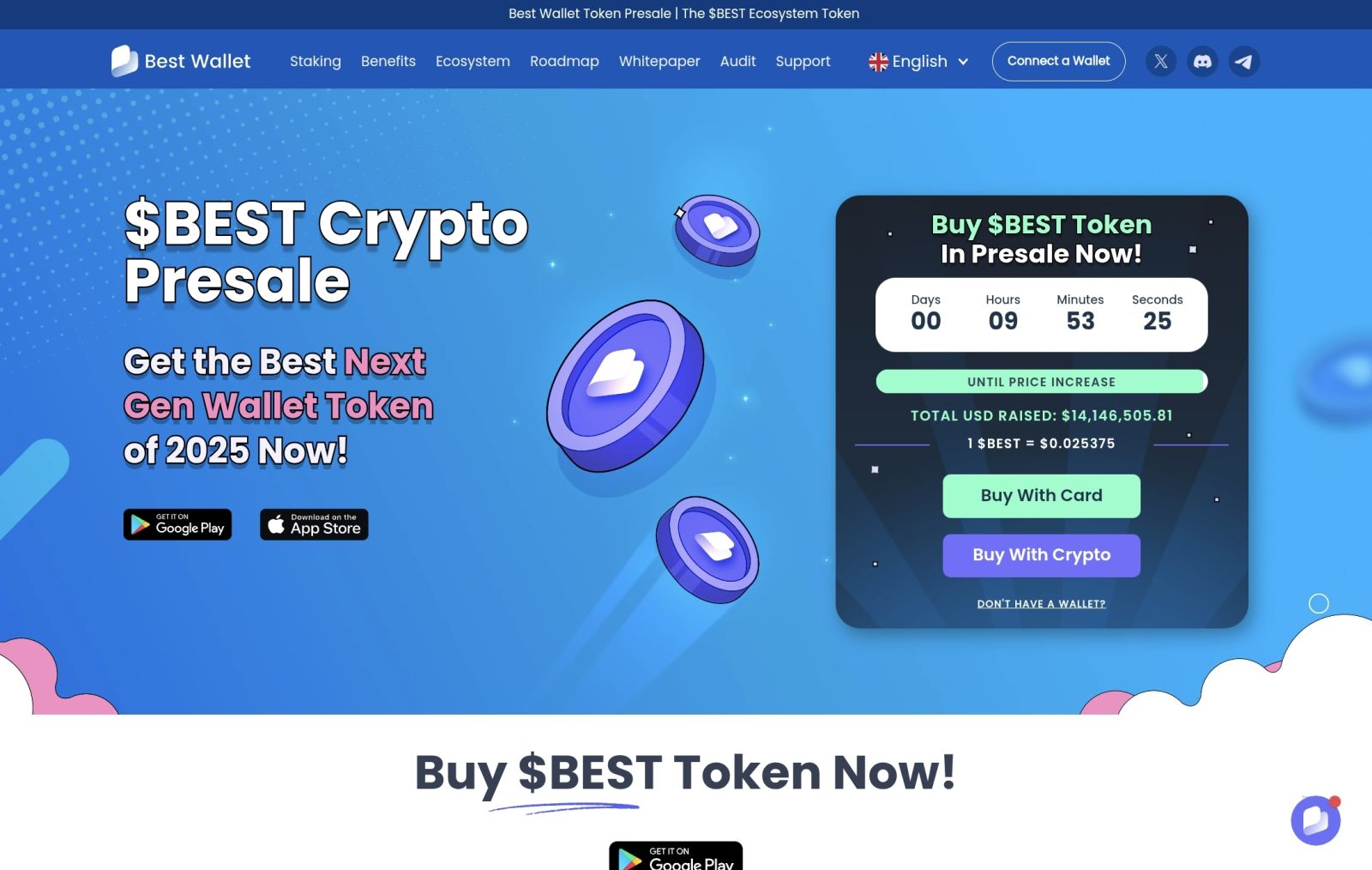 Ключевым элементом экосистемы стал собственный токен $BEST. Его можно приобрести на этапе открытого пресейла, где уже собрано более $14 млн. Текущая стоимость токена — $0,025375. Владельцы $BEST получают доступ к закрытым инвестиционным идеям, приоритетное участие в токенсейлах и увеличенные бонусы в приложении. Также токен можно отправить в стейкинг с доходностью 96% годовых, уже заблокировано более 276 млн токенов.