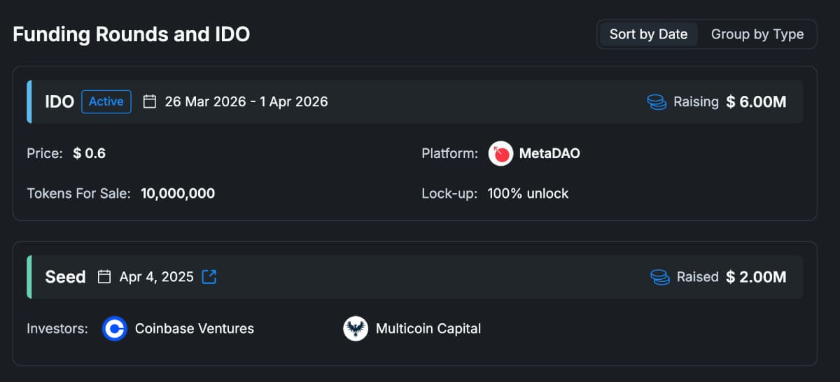 Если Raise небольшой, а Total Raise значительно больше, это означает, что основные деньги проект получил не от розничных участников, а от частных инвесторов на ранних этапах. Само по себе это не хорошо и не плохо, но в таком случае важно посмотреть, когда разблокируются токены seed- и private-раундов. Если большие приватные аллокации начнут выходить на рынок рано, это может создать дополнительное давление на цену.