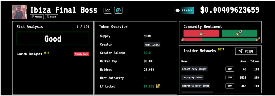 Обвал был рыночным — следствие массовой фиксации прибыли, а не действий создателей. Все ключевые параметры указывали на честный запуск: без премайна, без скрытых аллокаций, с выключенным mint authority и 75,5% ликвидности, зафиксированной в пуле.