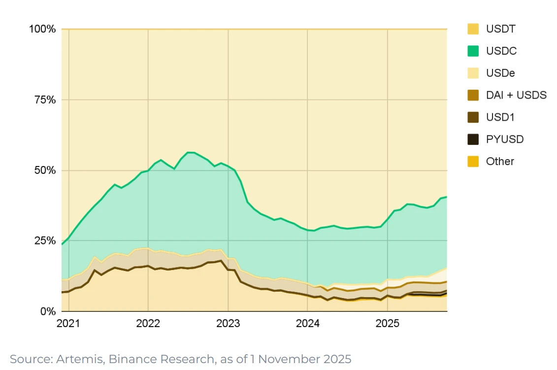 Сделки M&A только ускоряют этот тренд. Stripe покупает инфраструктурного провайдера Bridge за 1,1 млрд долл. и одновременно строит собственный L2-слой Tempo.Coinbase, по данным Binance Research, планирует приобретение BVNK с оценкой около 2 млрд долл., усиливая позиции в инфраструктуре стейблкоин-платежей. Это уже не эксперимент с «еще одним криптопродуктом», а борьба за владение критическим слоем будущих глобальных расчетов.