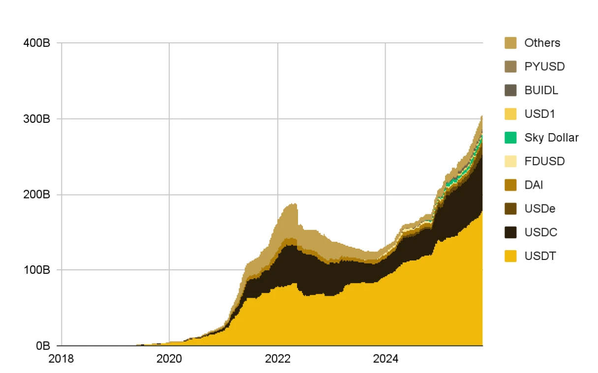 Совокупный объем рынка превысил 300 млрд долл., а по скорректированным ежедневным объемам транзакций стейблкоины опередили Visa и уступают только американской системе ACH. По сути, мы наблюдаем рождение новой платежной инфраструктуры, которая выросла из криптоиндустрии, но давно вышла за ее пределы.