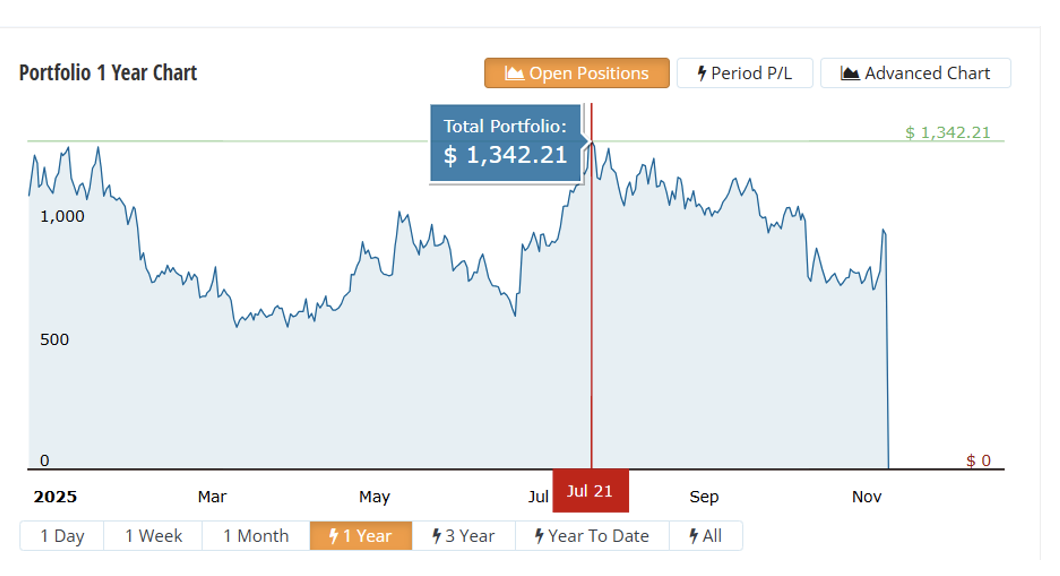 В этом году эта доля портфеля наилучший результат показывала 21 июля, однако даже тогда она была убыточна (общие вложения составляли $1406,12)