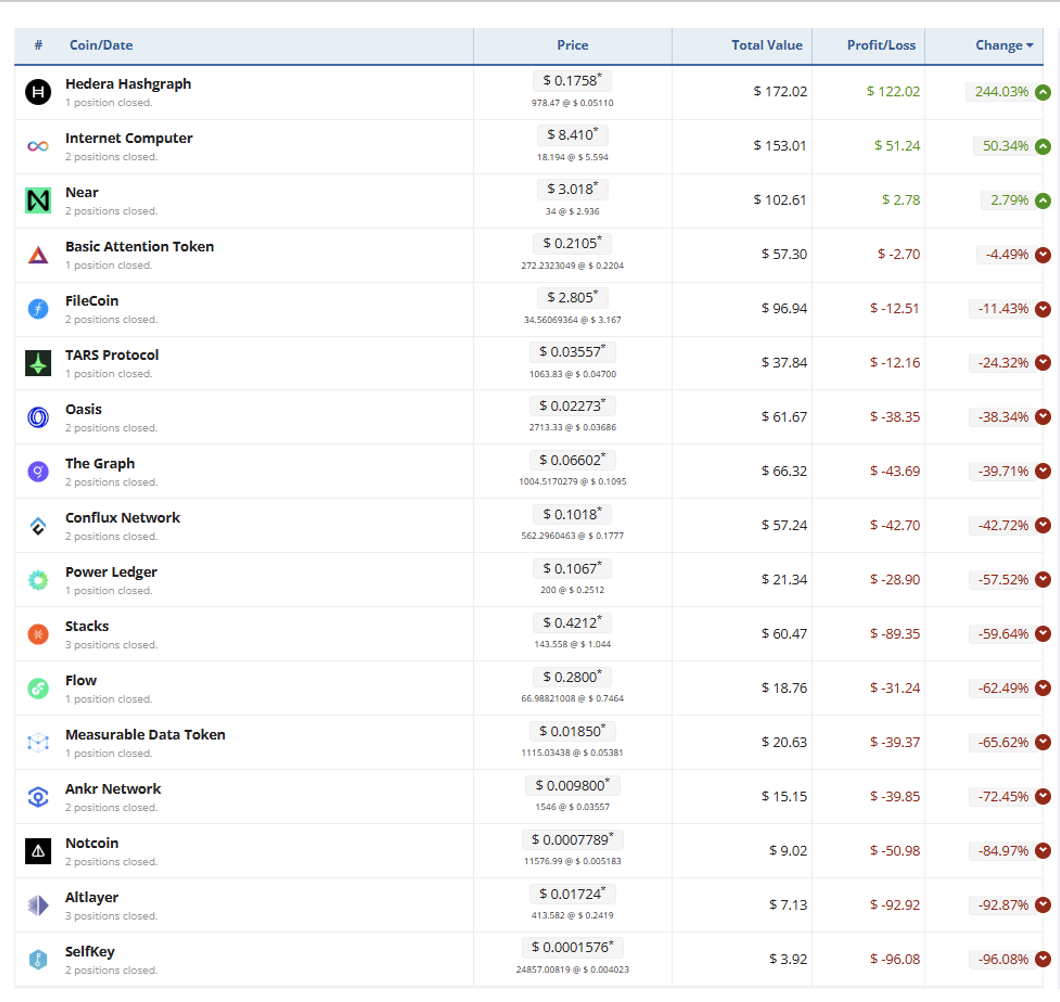 Суммарные потери составили $444,75 (минус 32%) и всего три актива принесли прибыль.