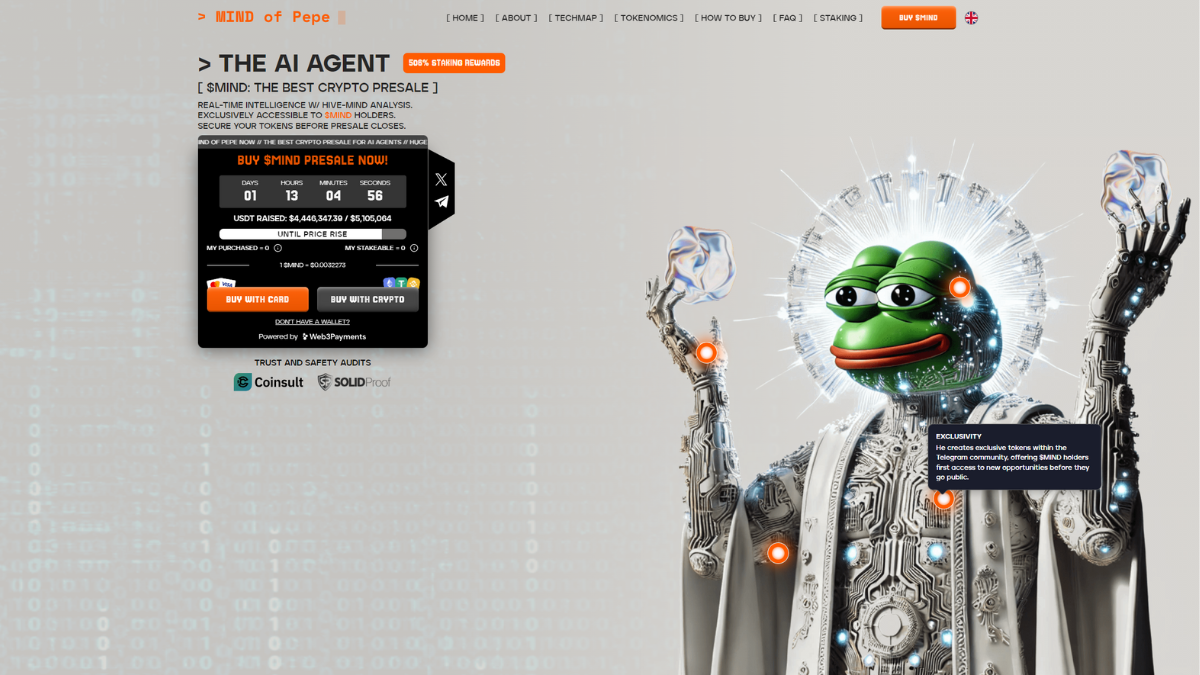 Mind of Pepe имеет высокие шансы на кратный рост после выхода на криптовалютные биржи.
